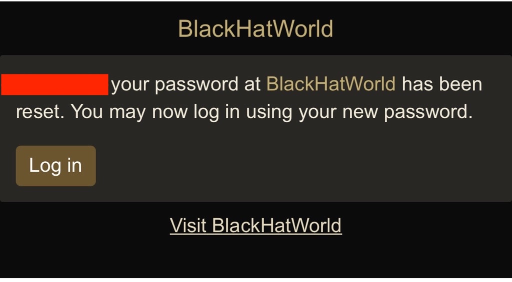 Please note: Blackhatworld.com may occasionally force a password reset as a precaution. If this happens, you will see an email like the one below from Support@blackhatworld.com.- Please check the 'From' email address to verify this request.